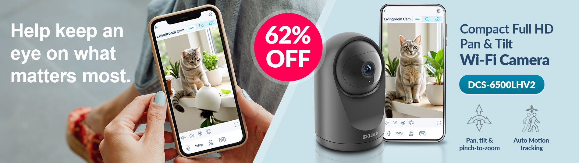 Compact Full HD Pan & Tilt Wi-Fi Camera - DCS-6500LHV2