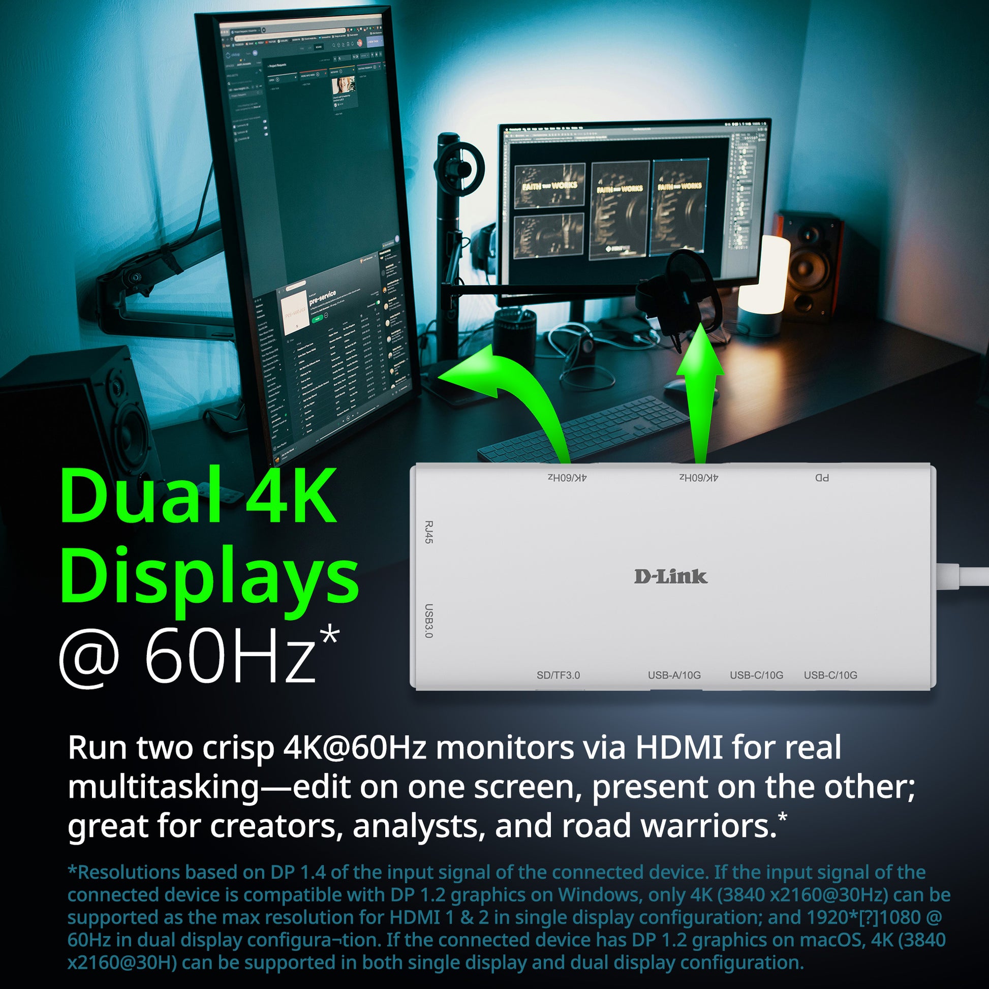 Les deux ports HDMI du DUP-A01 prennent en charge la connectivité à un ou deux écrans avec une résolution 4K à 60 Hz, idéale pour un divertissement immersif ou des présentations professionnelles.