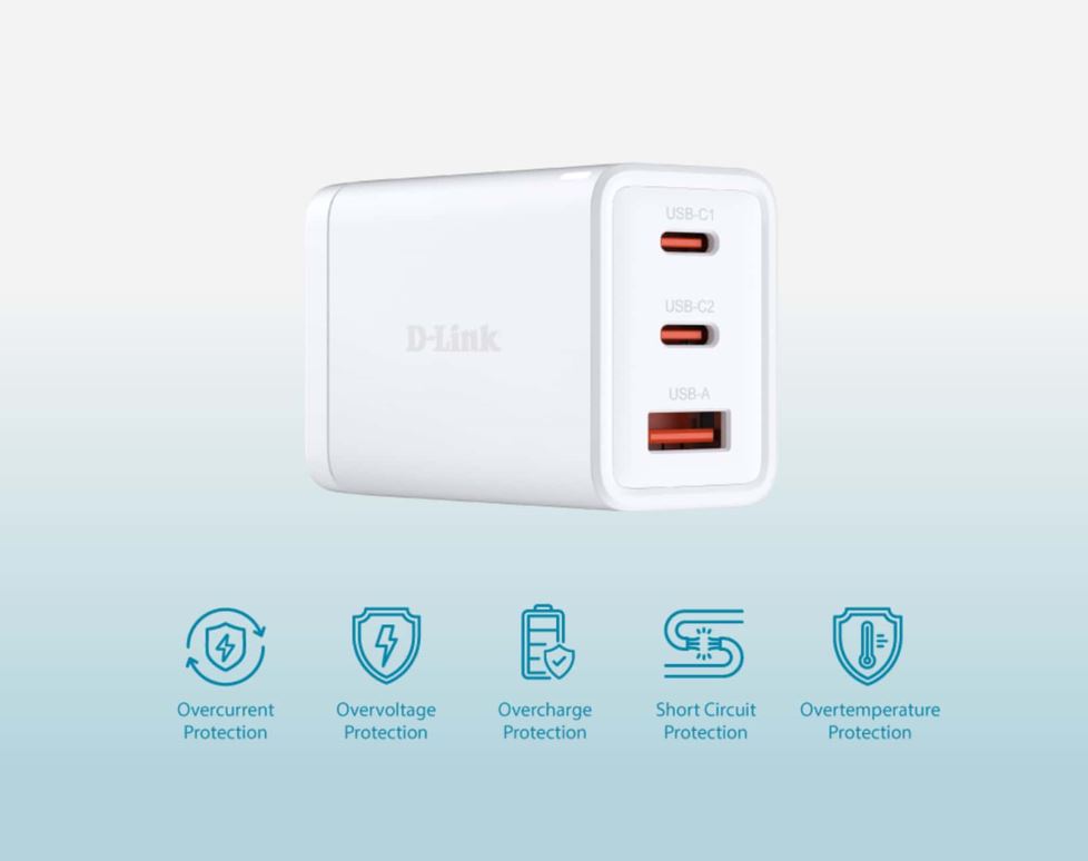 Que vous soyez un voyageur d'affaires, un travailleur à distance, un travailleur indépendant ou simplement toujours en déplacement, le chargeur D-Link 65 W GaN (DCP-651) vous aide Maintient tous vos appareils essentiels alimentés*. Avec son format compact et ses prises interchangeables**, c'est le compagnon de voyage idéal : il simplifie votre installation et vous évite d'avoir à utiliser plusieurs chargeurs où que vous alliez.