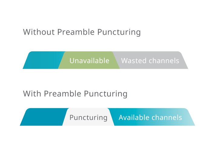 Before Wi-Fi 7, even small interference could block an entire channel. With Preamble Puncturing, Wi-Fi 7 skips over the noise and keeps more channels open for fast, reliable performance.