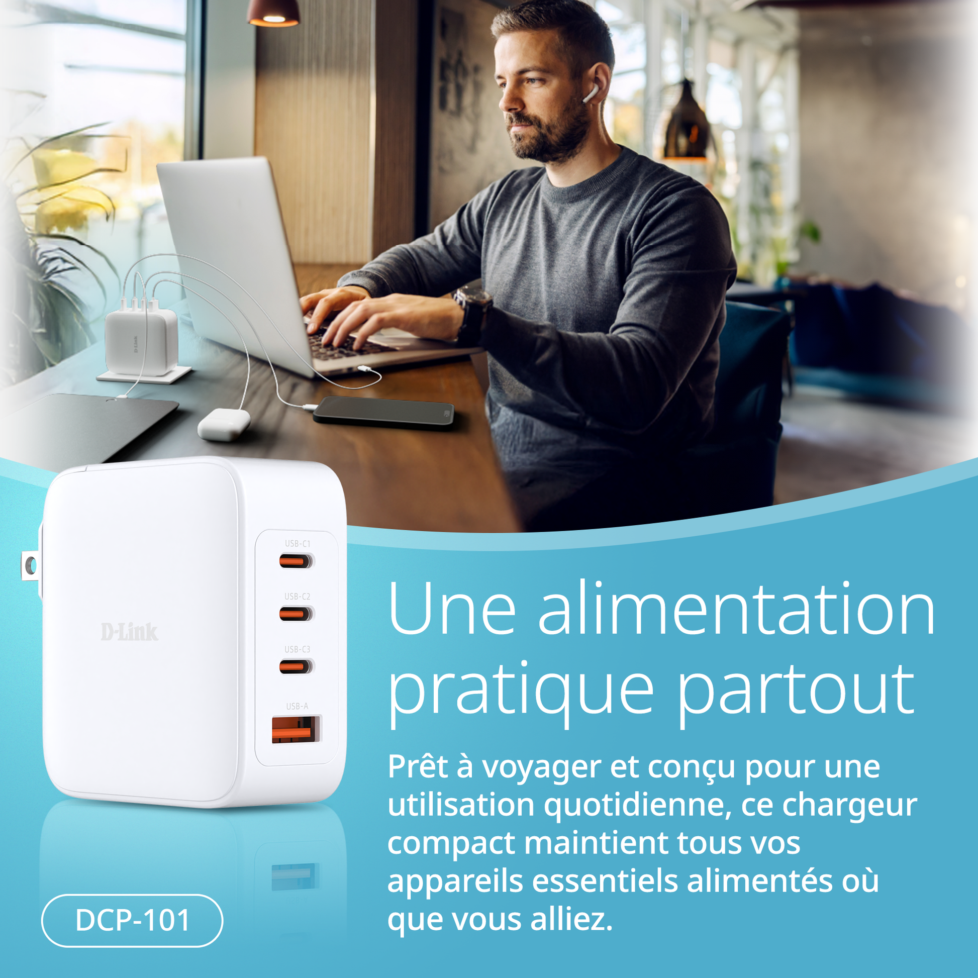 Whether you’re a business traveler, remote worker, or multitasker, the D-Link 100W GaN Charger (DCP-101) will help you keep your devices powered. Its compact, travel-ready design makes it the ultimate all-in-one charging companion for life on the go.