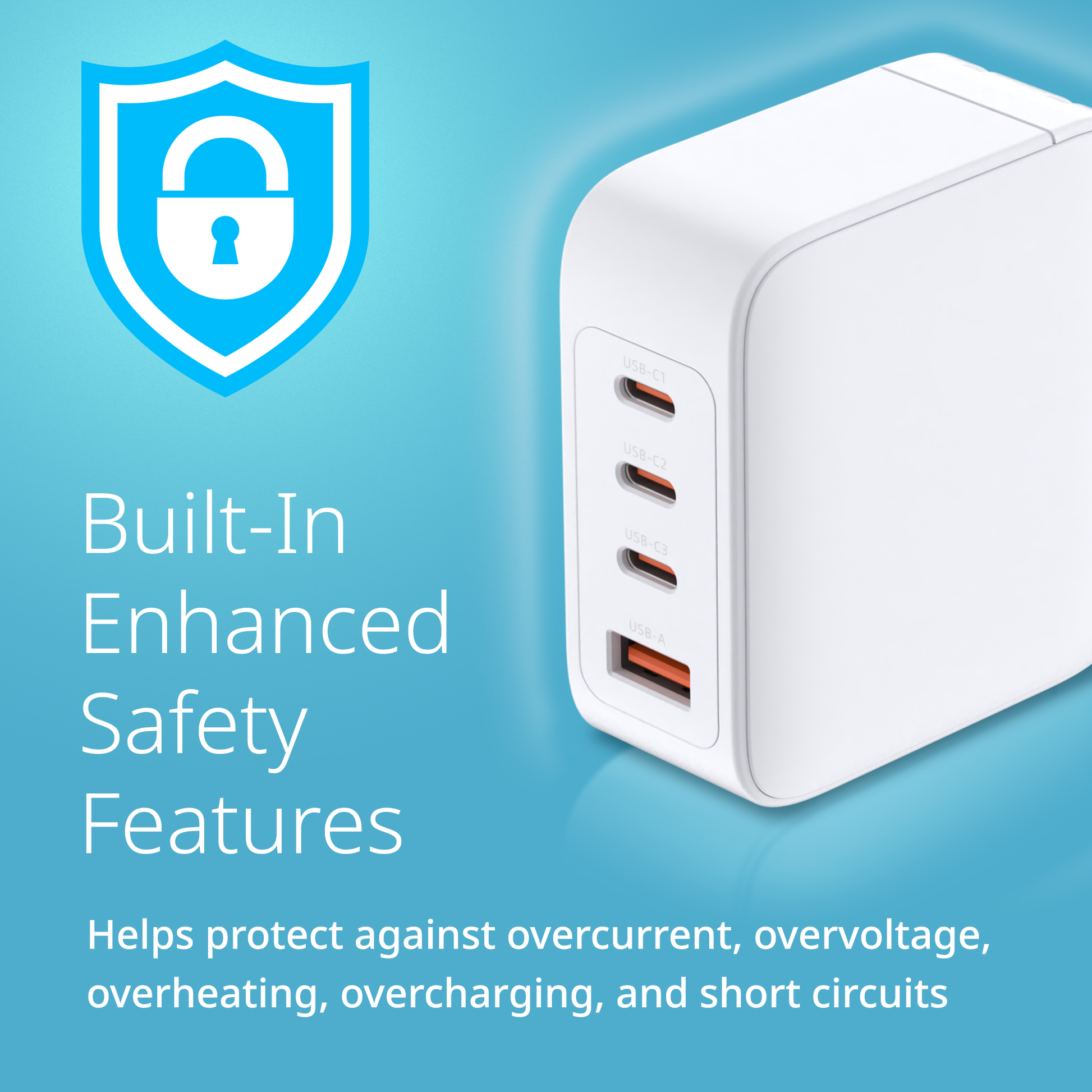The DCP-101 includes multiple built-in safety features. overcurrent, overheating, or short circuits are detected, the charger powers off, helping safeguard you and your devices.