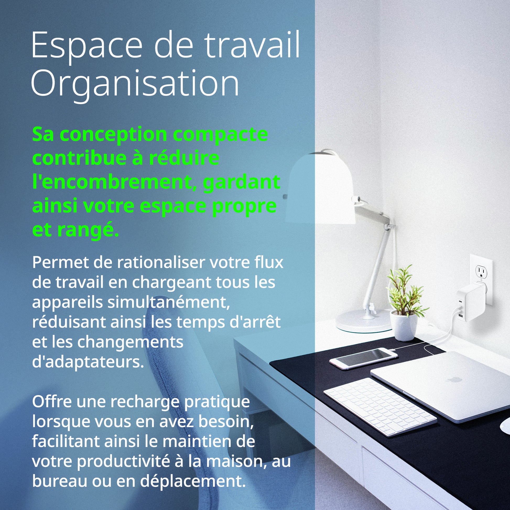 - CHARGE MORE, CLUTTER LESS – A single multi-port charger enables laptops, tablets, phones, and wearables to stay powered in one place.