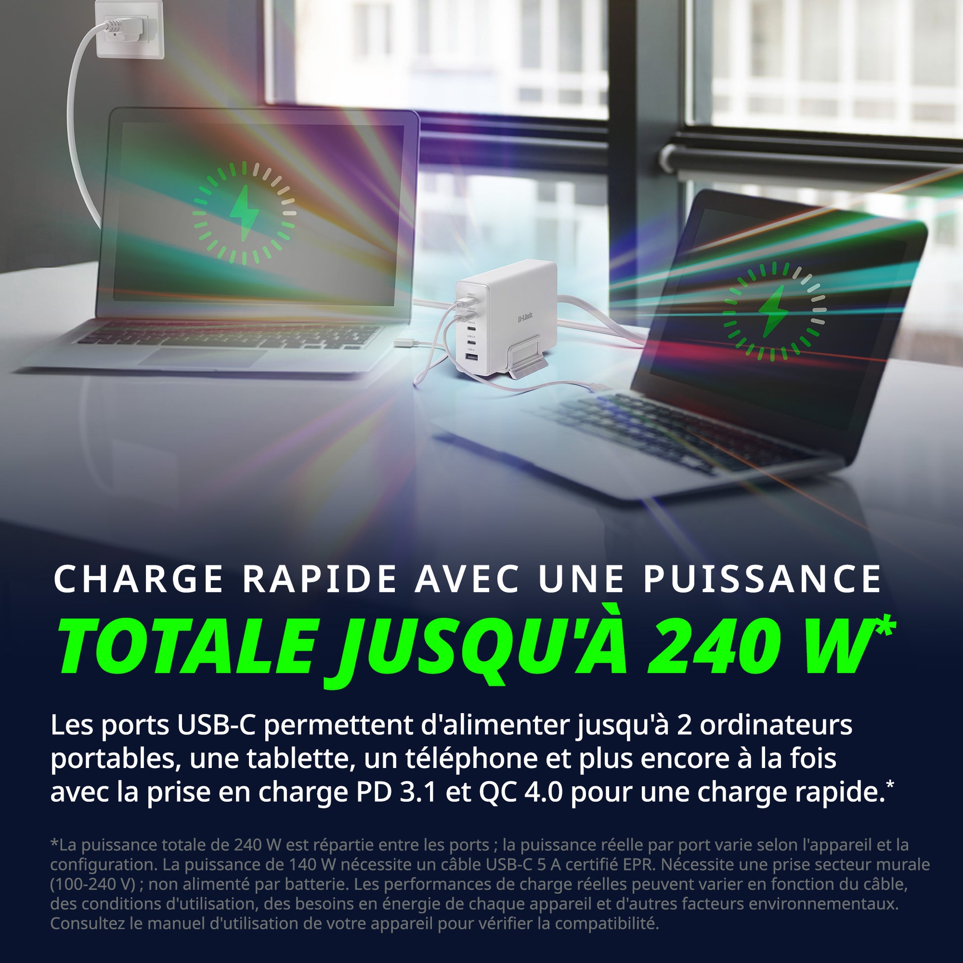 - FAST CHARGE WITH UP TO 240W* TOTAL OUTPUT – Helps power up to two laptops plus a tablet, phone, and more at once with PD 3.1 and QC 4.0 support for fast charging.*