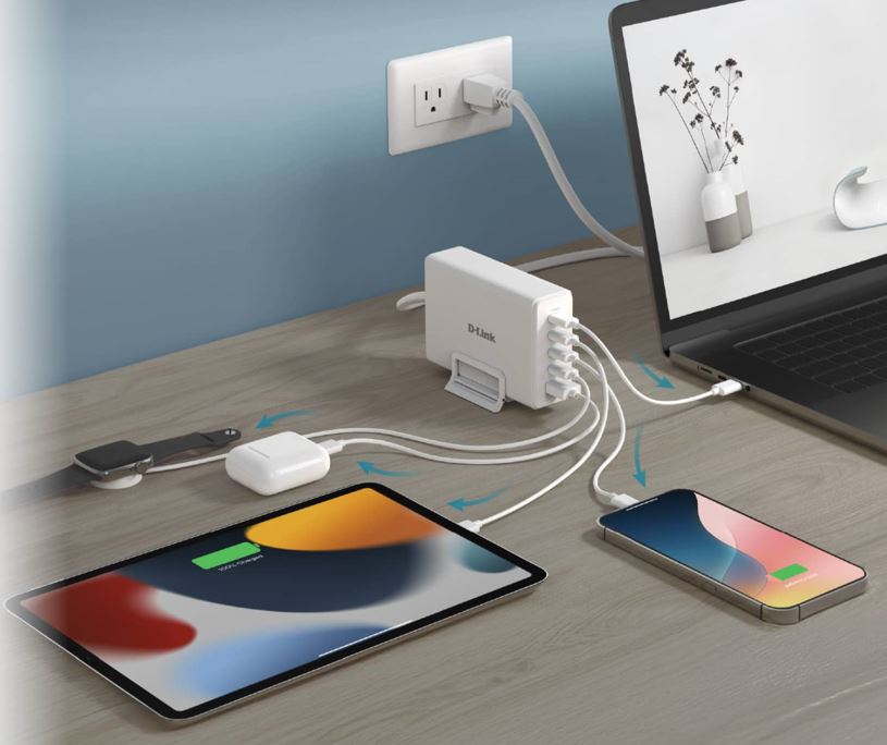 - CHARGE MORE, CLUTTER LESS – A single charging station enables laptops, tablets, phones, and wearables to stay powered in one place.