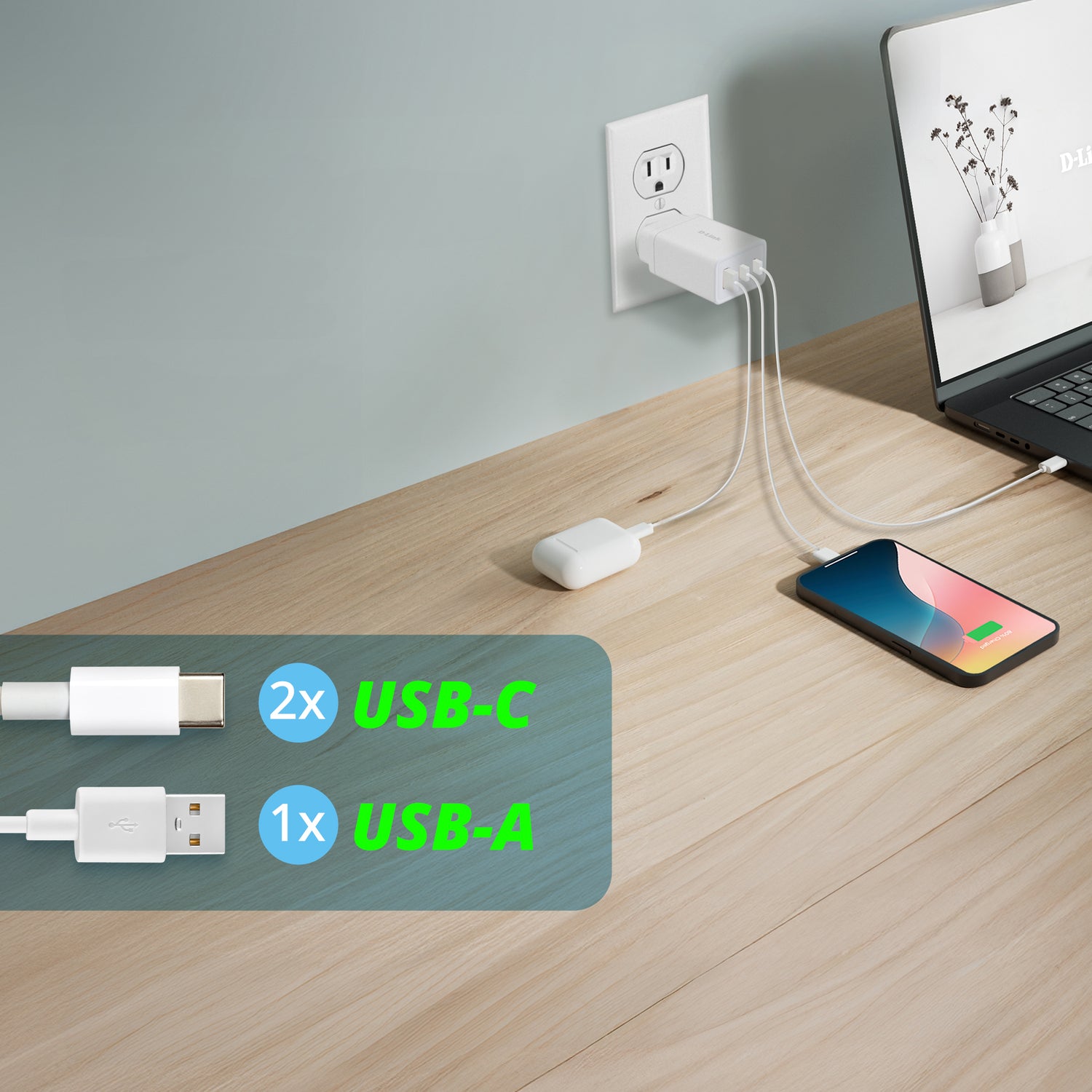 - Simultaneous Charging Freedom – Three ports let you power your laptop and up to two additional devices at once*—streamline your setup and eliminate extra plugs (wattage requirements vary by device