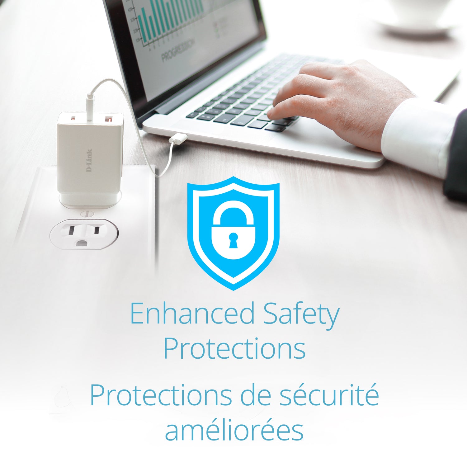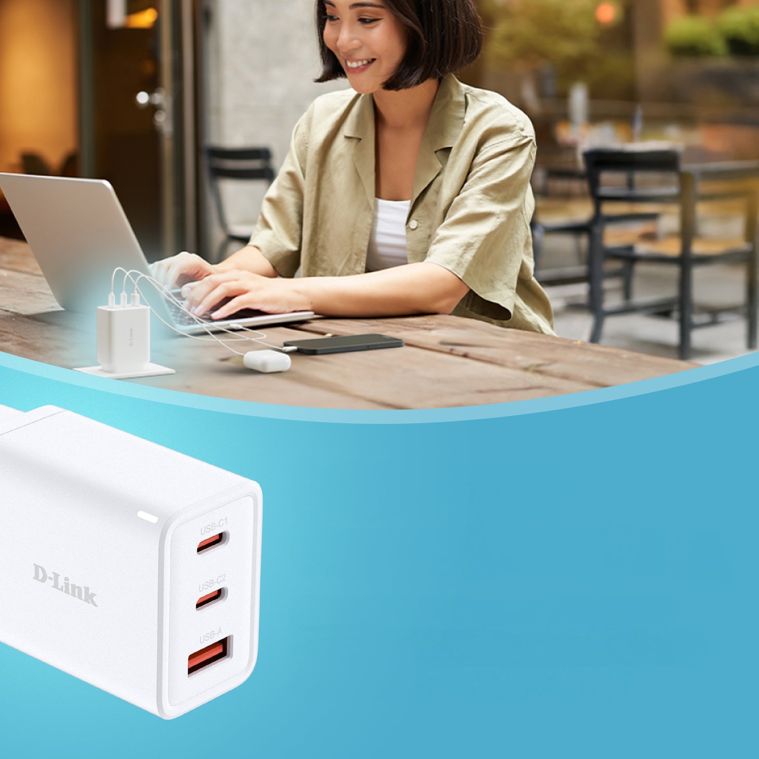 From morning meetings to evening downtime, the D-Link 65W GaN Charger (DCP-651) helps keep your devices powered up. With two USB-C ports and one USB-A port, you can charge your laptop, phone, and smartwatch all at once*—at home, at work, or wherever the day takes you. One compact charger. Maximum productivity.